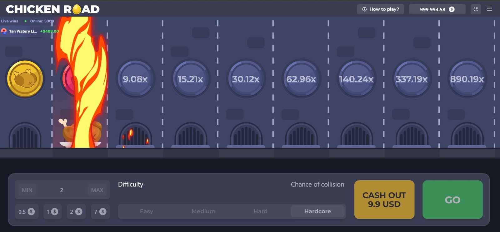 W mobilnej grze kasynowej Chicken Road sam decydujesz, kiedy wypłacić swoją nagrodę. Trzeba to zrobić, zanim kurczak nadepnie na właz i „spłonie”. Jeśli to się stanie, aktualny mnożnik, nagroda i zakład przepadają.